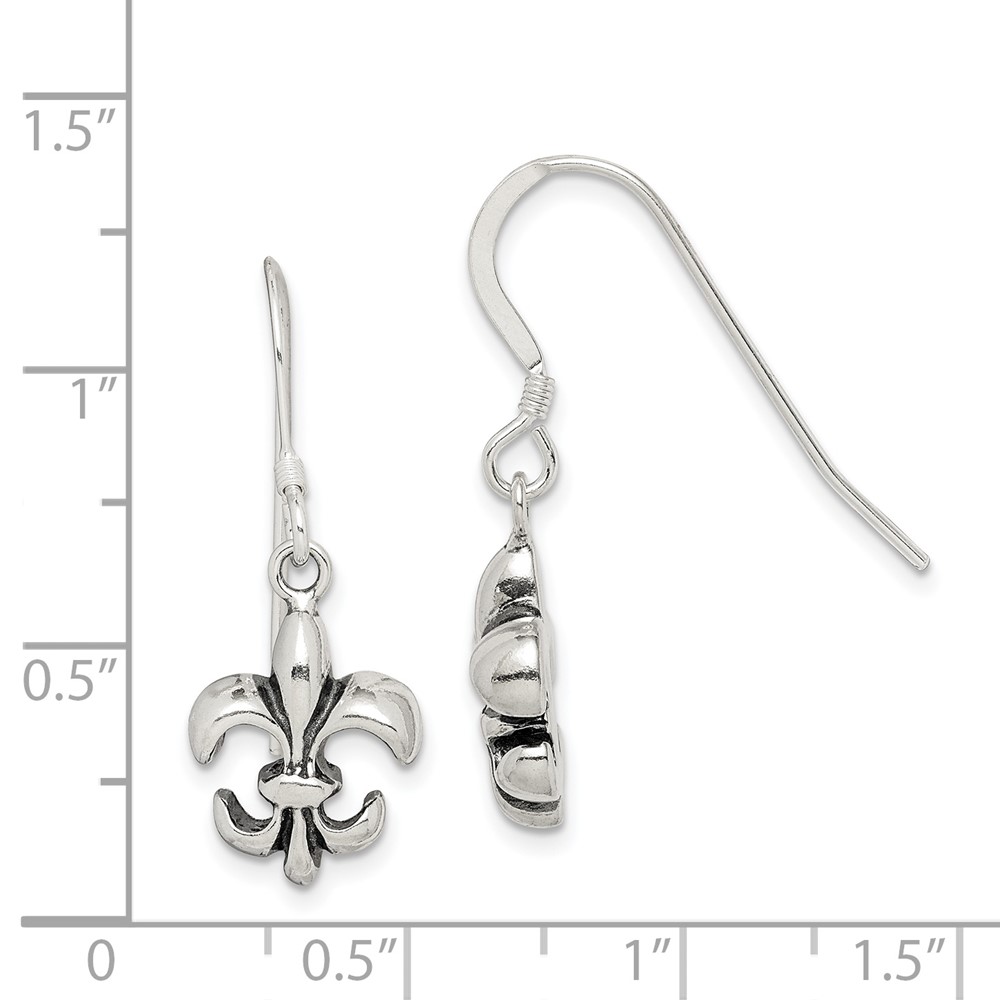 Sterling Silver Polished & Antiqued Fleur de Lis Dangle Earrings
