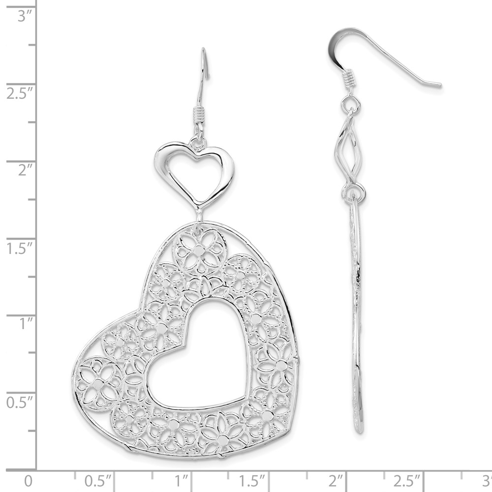 Sterling Silver Polished Fancy Filigree Heart Dangle Earrings