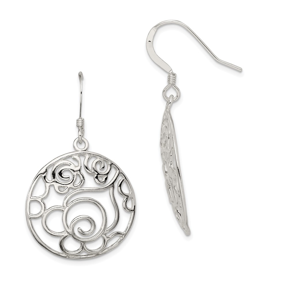 Sterling Silver Polished Fancy Circle Dangle Earrings