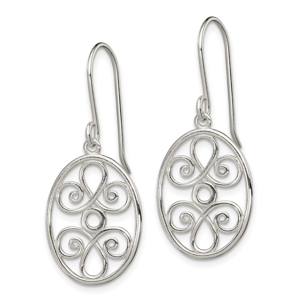 Sterling Silver Polished Filigree Oval Dangle Earrings