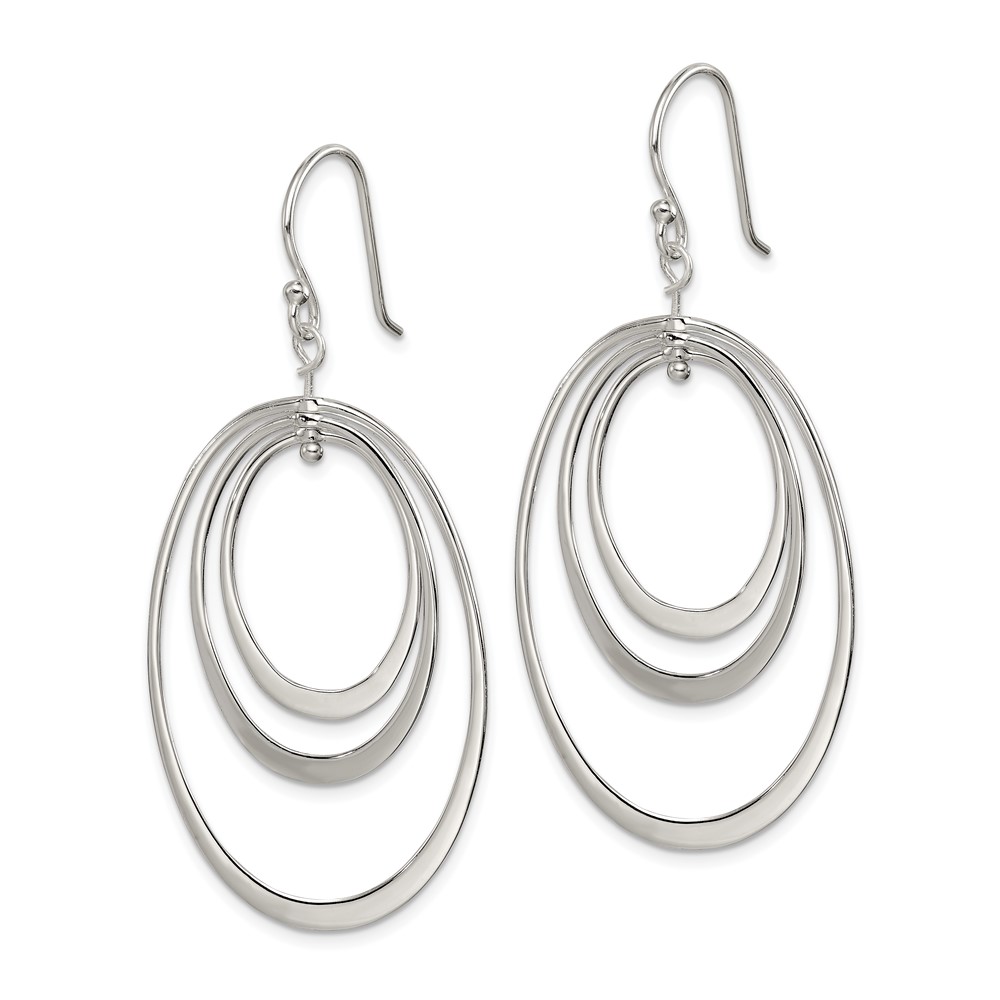 Sterling Silver Polished Triple Oval Dangle Earrings