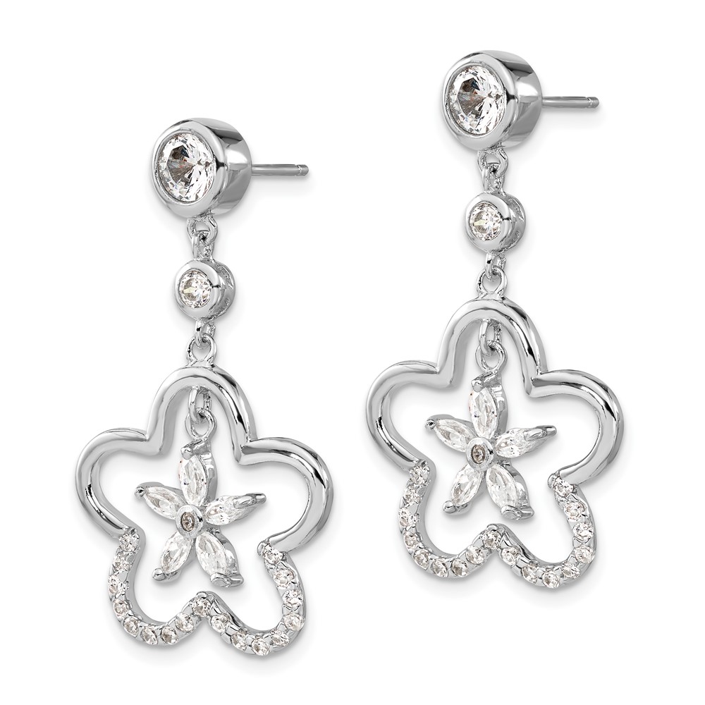Sterling Silver Polished CZ Flower Post Dangle Earrings