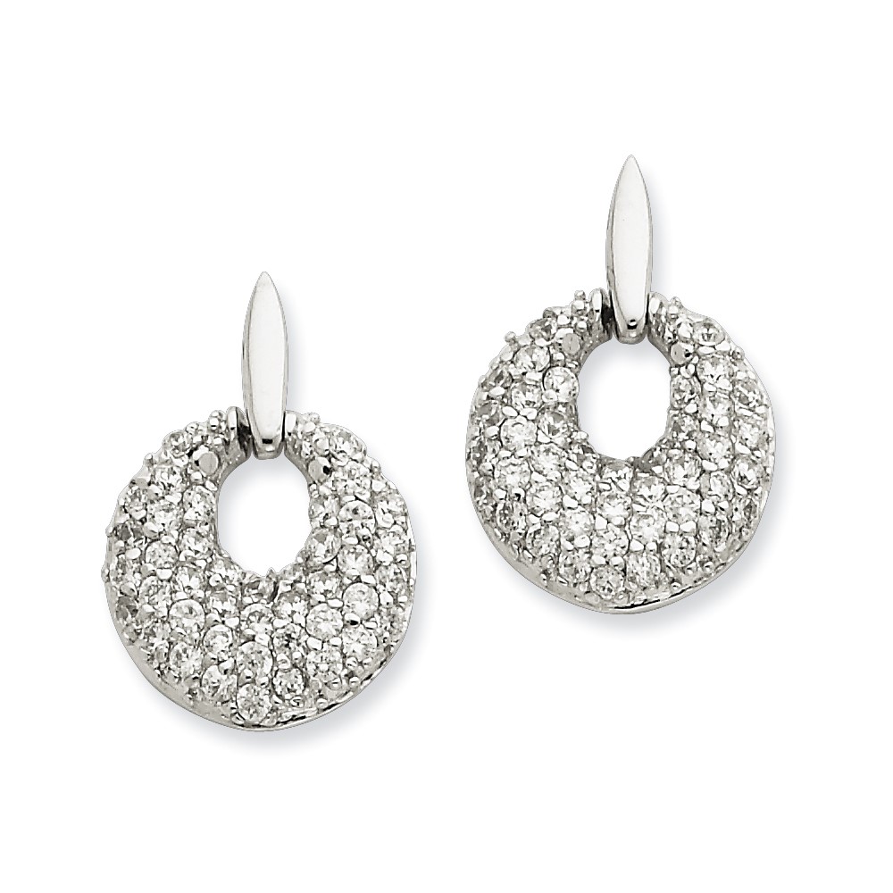 Sterling Silver Crystal Circle Post Dangle Earrings