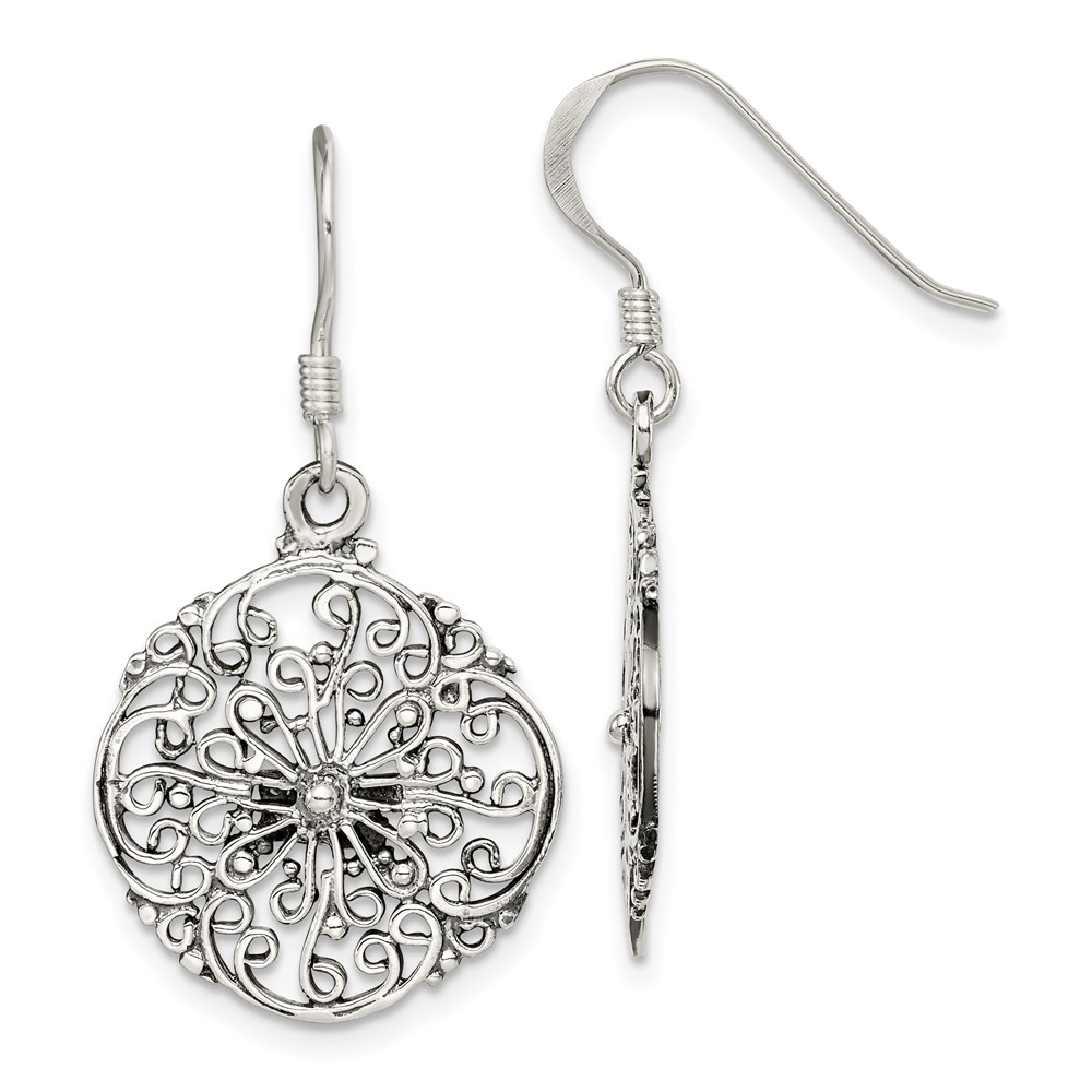 Sterling Silver Polished & Antiqued Filigree Circle Dangle Earrings