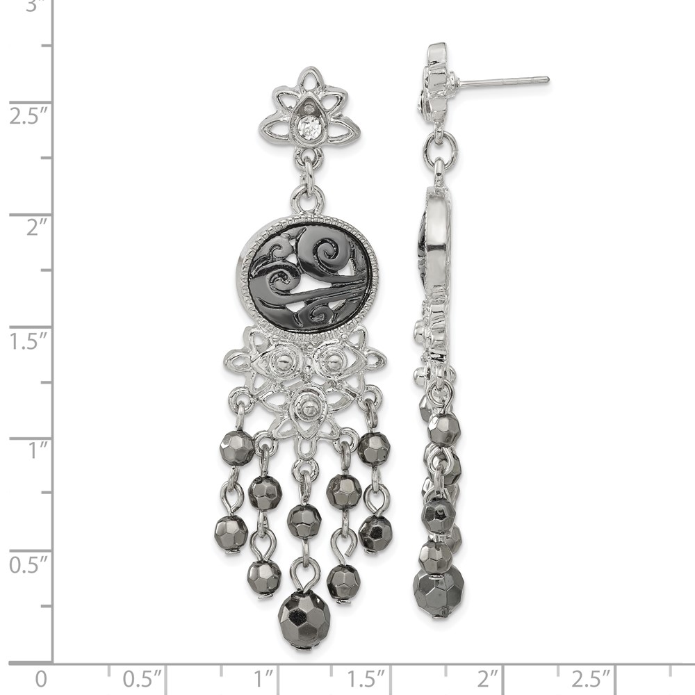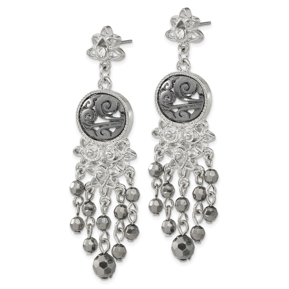 1928 Jewelry Silver-tone & Black-plated Filigree Clear and Hematite Faceted Acrylic Beads Long Dangle Post Earrings