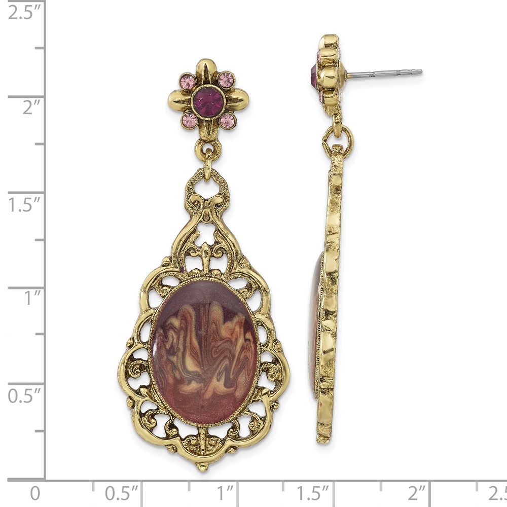 1928 Jewelry Brass-tone Filigree Frame Purple Crystal Oval Purple Enamel Teardrop Dangle Post Earrings