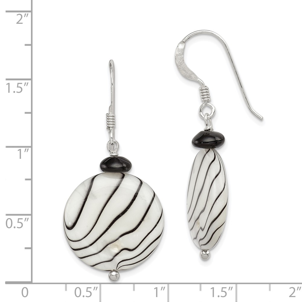 Sterling Silver Polished Black Agate/Zebra Mother of Pearl Dangle Earrings