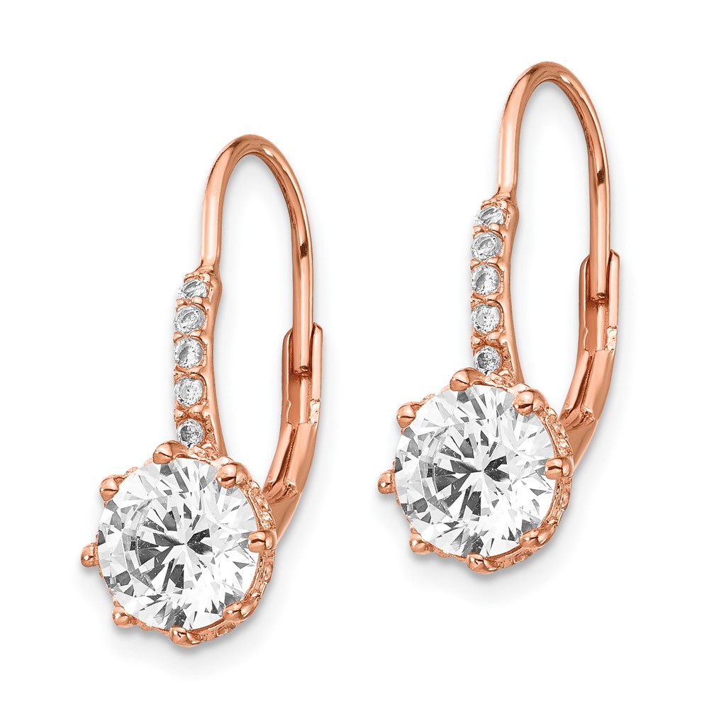 Cheryl M Sterling Silver Rose Gold-plated Brilliant-cut CZ Leverback Dangle Earrings