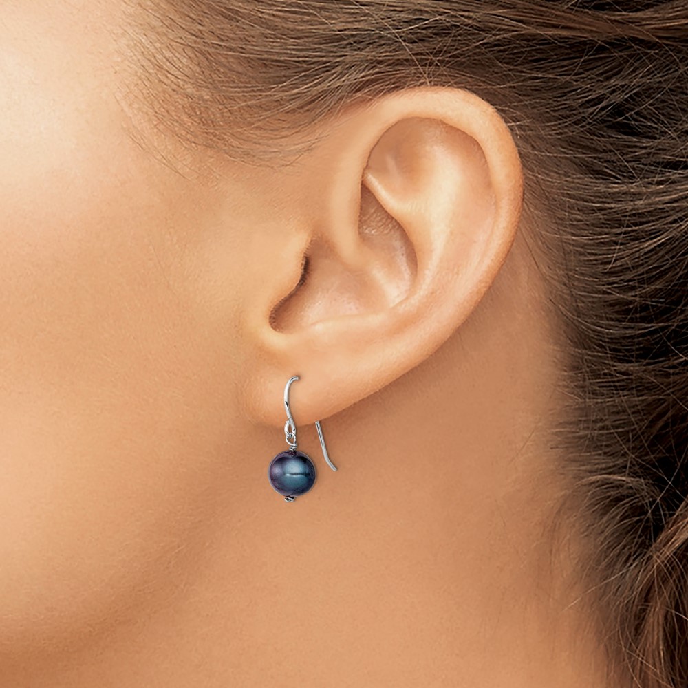 Sterling Silver Rhodium-plated Black 7.5-8.5mm Black Semi-Round Freshwater Cultured Pearl Dangle Earrings