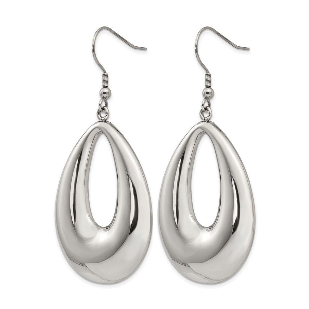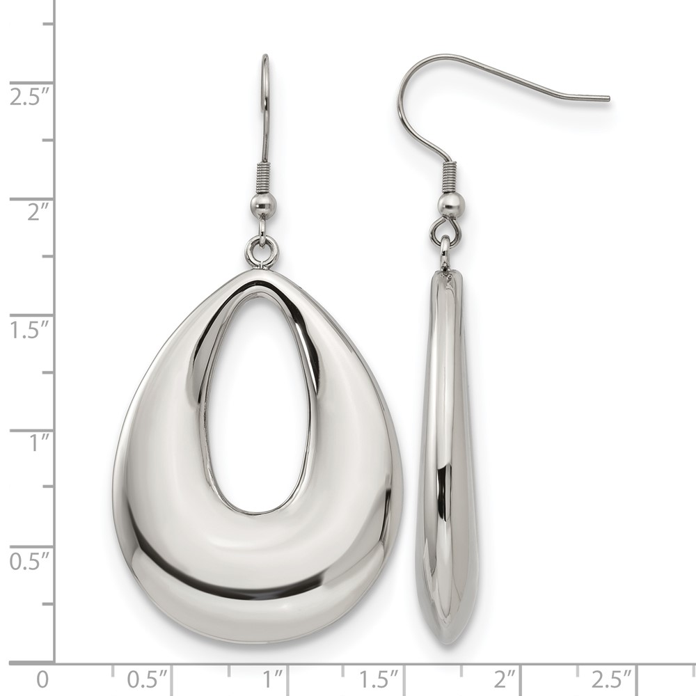 Chisel Stainless Steel Polished Hollow Teardrop Dangle Shepherd Hook Earrings