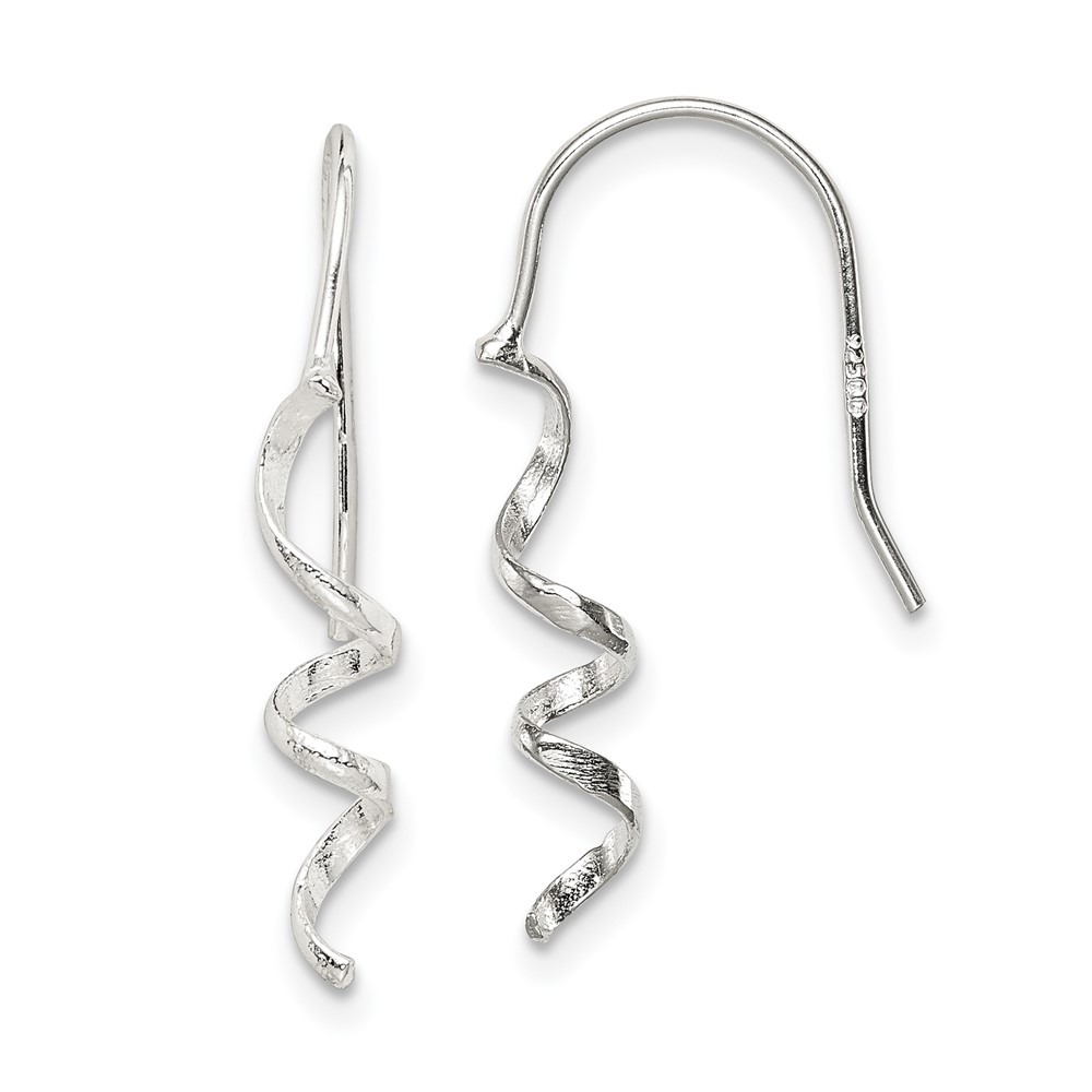 Sterling Silver Polished & Textured Spiral Dangle Earrings