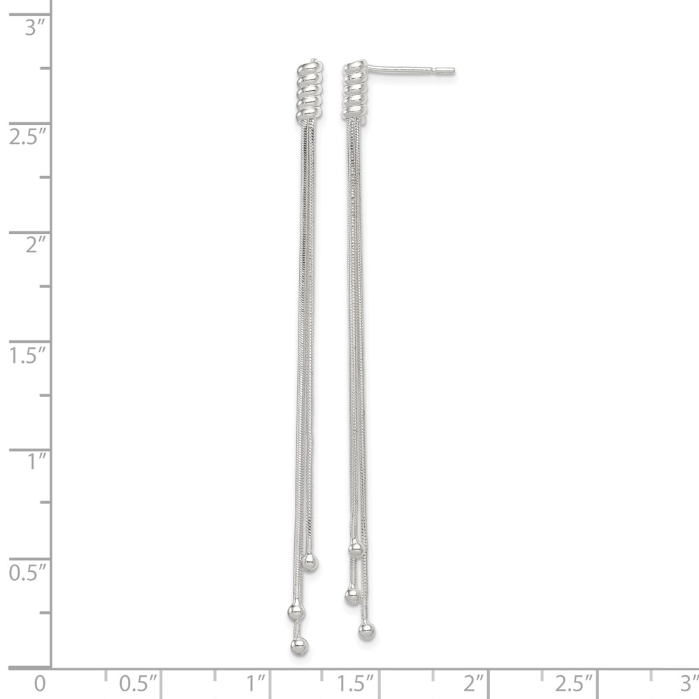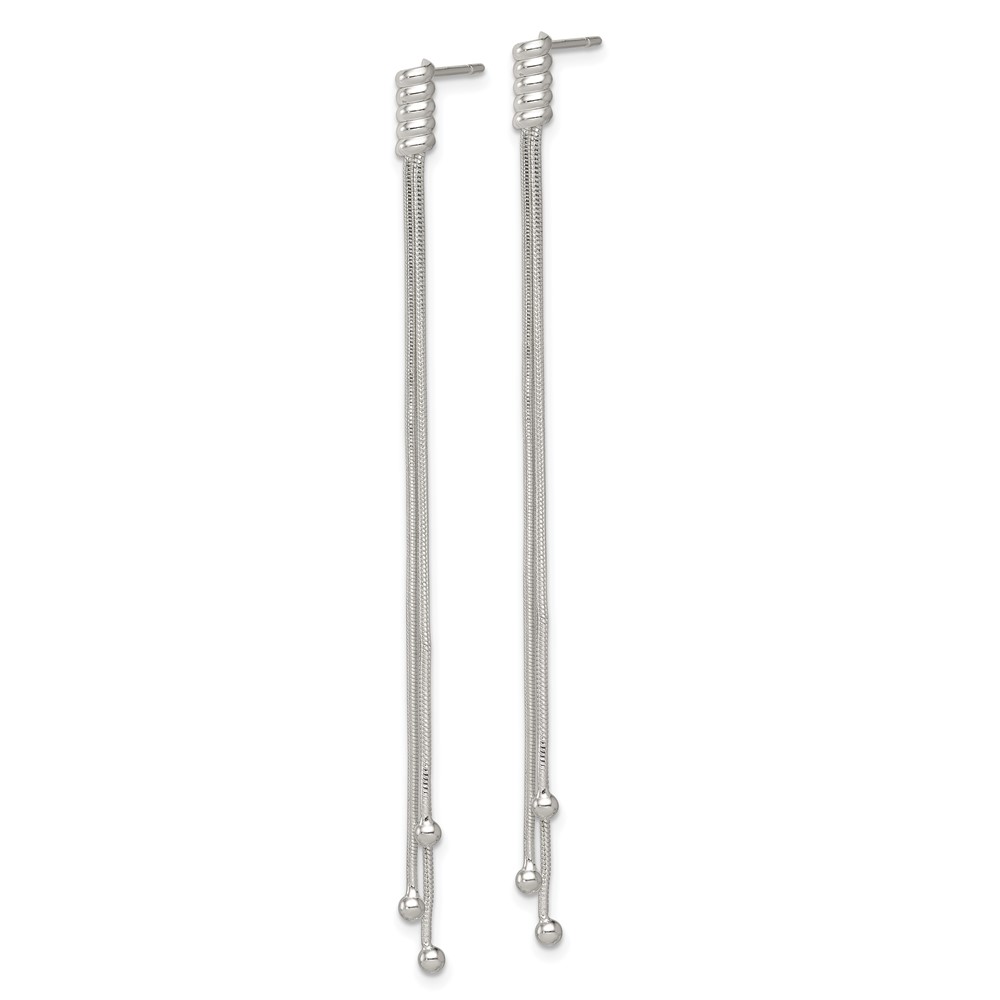 Sterling Silver Polished 3-Strand Chain & Beaded End Post Dangle Earrings
