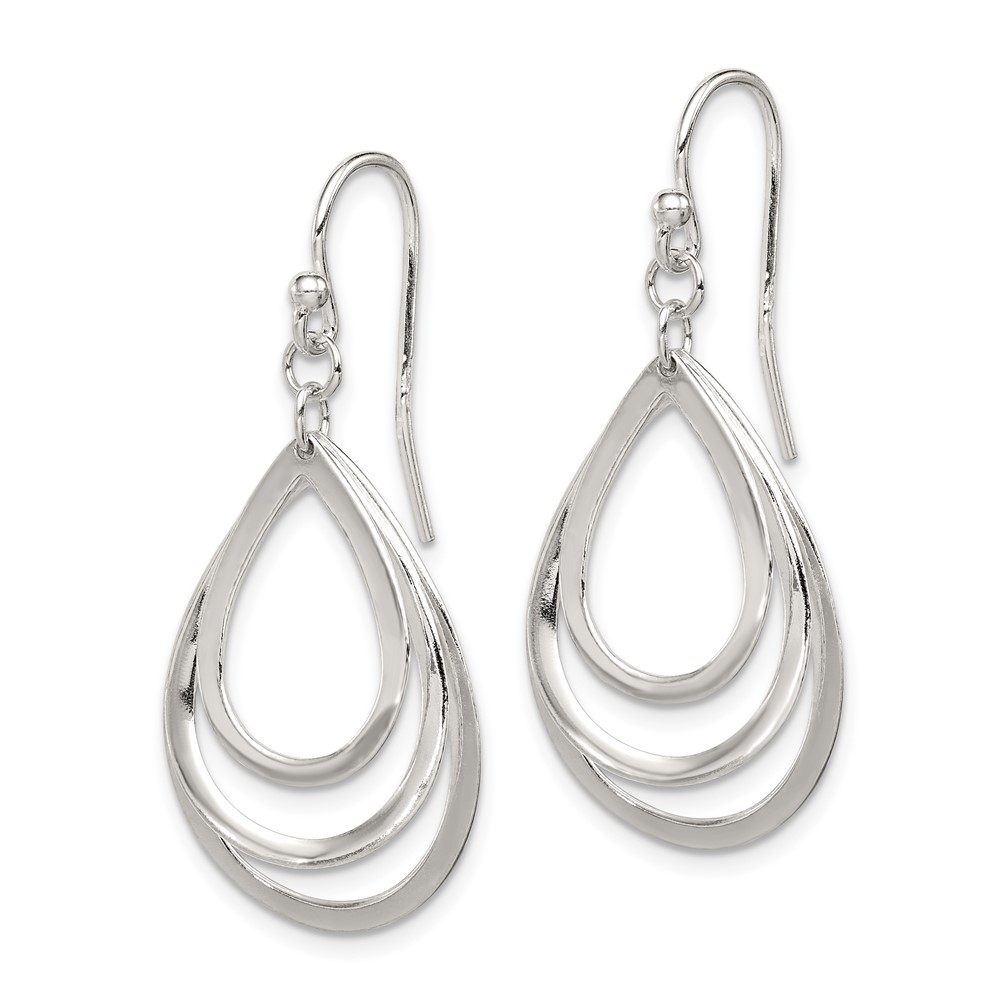 Sterling Silver Polished Triple Teardrop Dangle Earrings