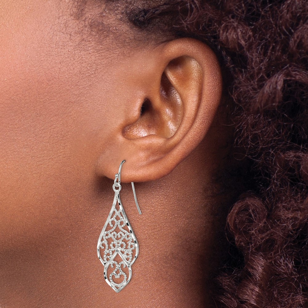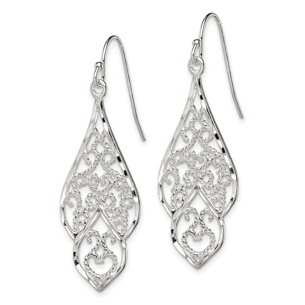 Sterling Silver Polished & Diamond-cut Fancy Filigree Dangle Earrings