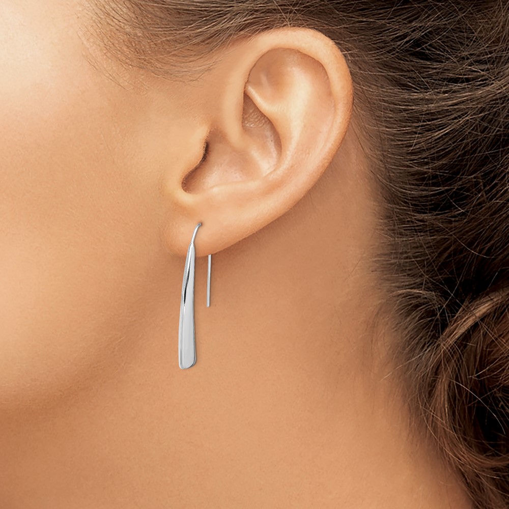 Sterling Silver Polished Rhodium Plated Fancy Bar Thread Earrings