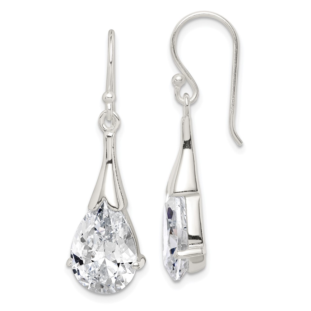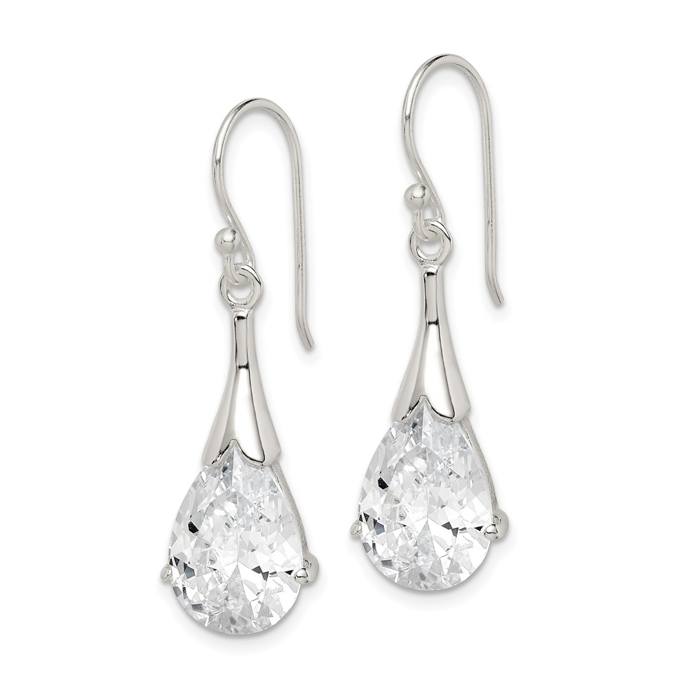 Sterling Silver Polished CZ Teardrop Dangle Earrings