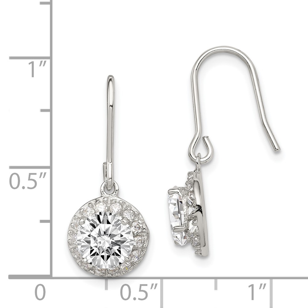 Sterling Silver Rhodium-plated Polished Round CZ Halo Dangle Earrings