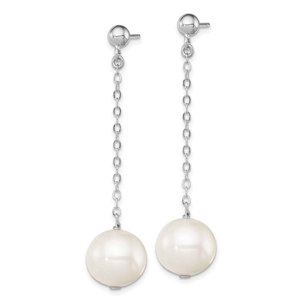 Sterling Silver Rhodium-plated 10-11mm White Round Freshwater Cultured Pearl Dangle Post Earrings