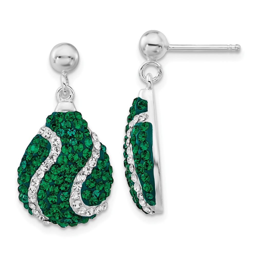 Sterling Silver Green & White Stellux Crystal Teardrop Post Dangle Earrings