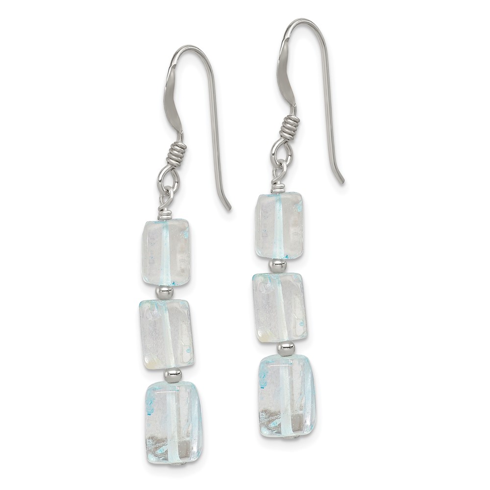 Sterling Silver Polished Rectangular Light Blue Quartz Dangle Earrings