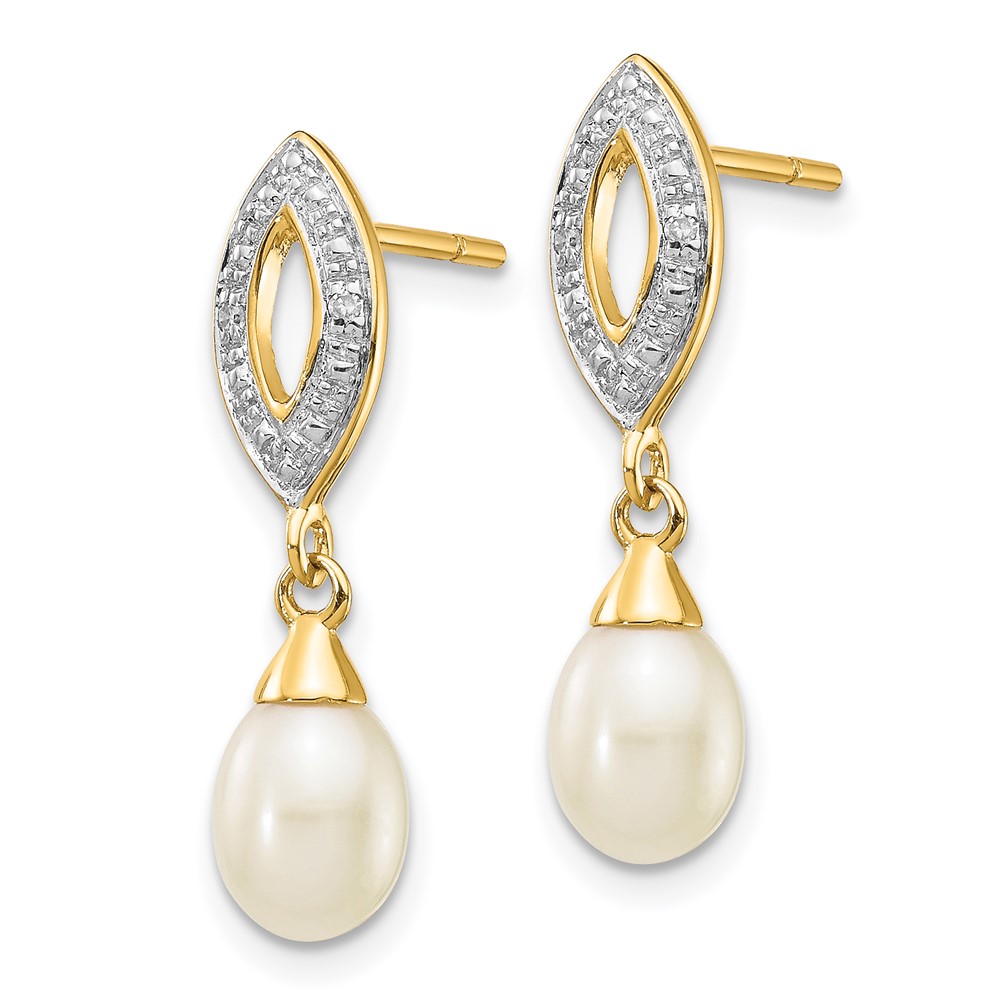 14k 7x5mm White Teardrop Freshwater Cultured Pearl and .01 carat Diamond Dangle Post Earrings