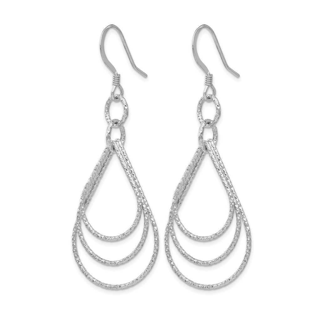 Leslie's Sterling Silver Rhod-pltd Textured Shepherd Hook Dangle Earrings