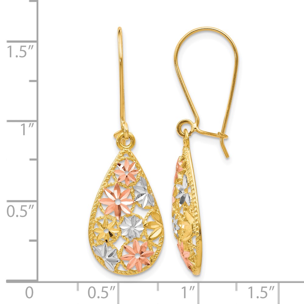 Leslie's 10K w/White and Rose Rhodium D/C Dangle Earrings