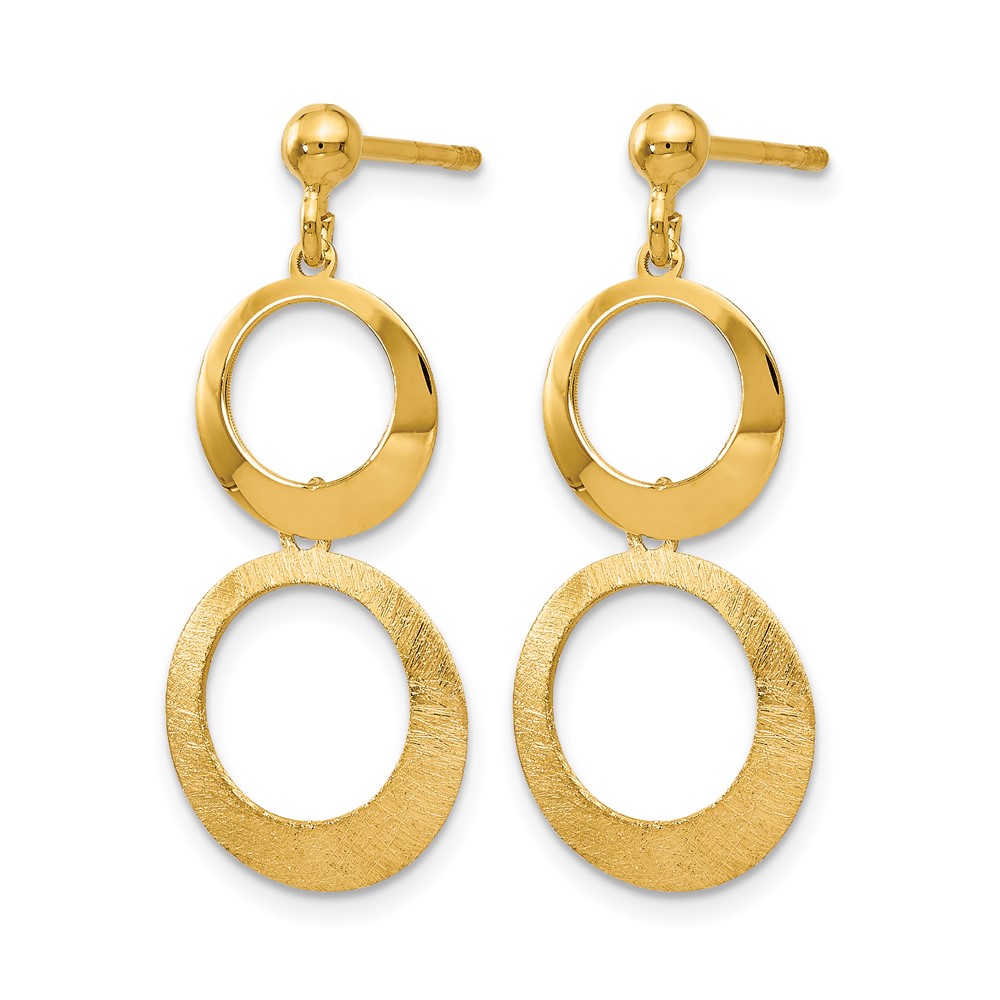 Leslie's 14K Polished and Scratch Finish Circle Post Dangle Earrings