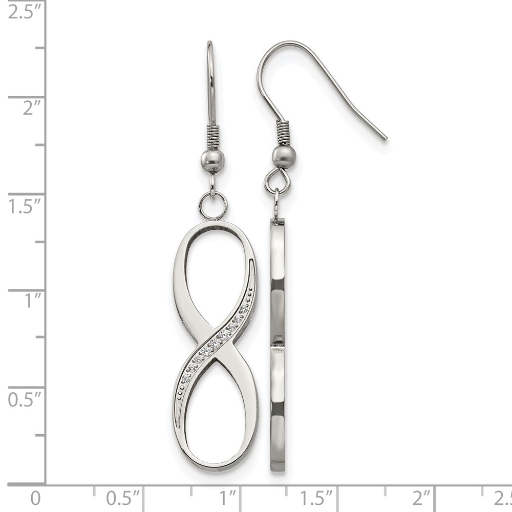 Chisel Stainless Steel Polished with CZ Infinity Dangle Shepherd Hook Earrings