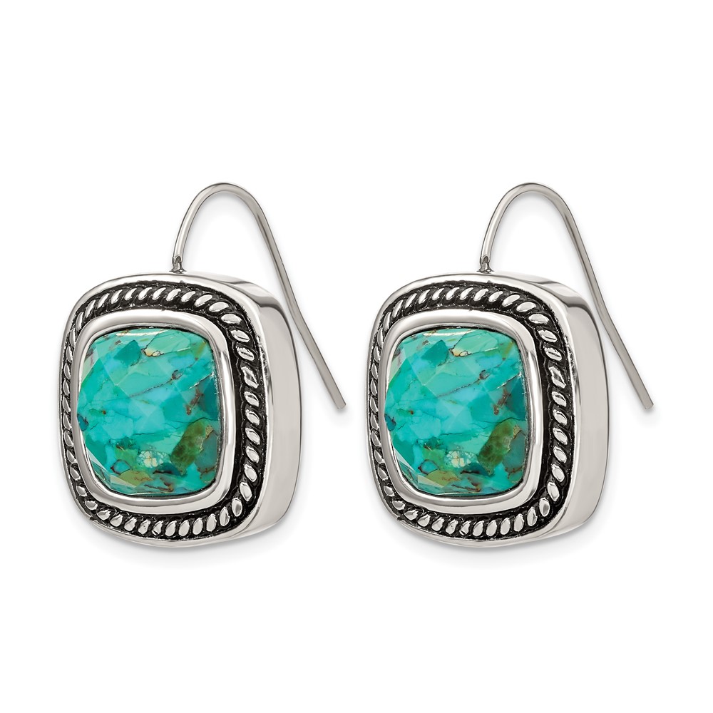 Chisel Stainless Steel Antiqued and Polished Imitation Turquoise Shepherd Hook Earrings