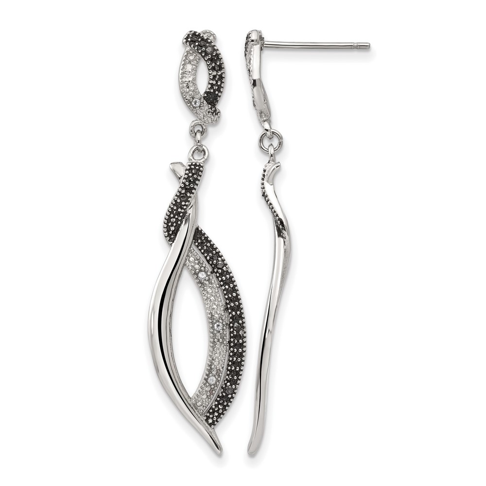 Stainless Steel Antiqued and Polished w/CZ Post Dangle Earrings
