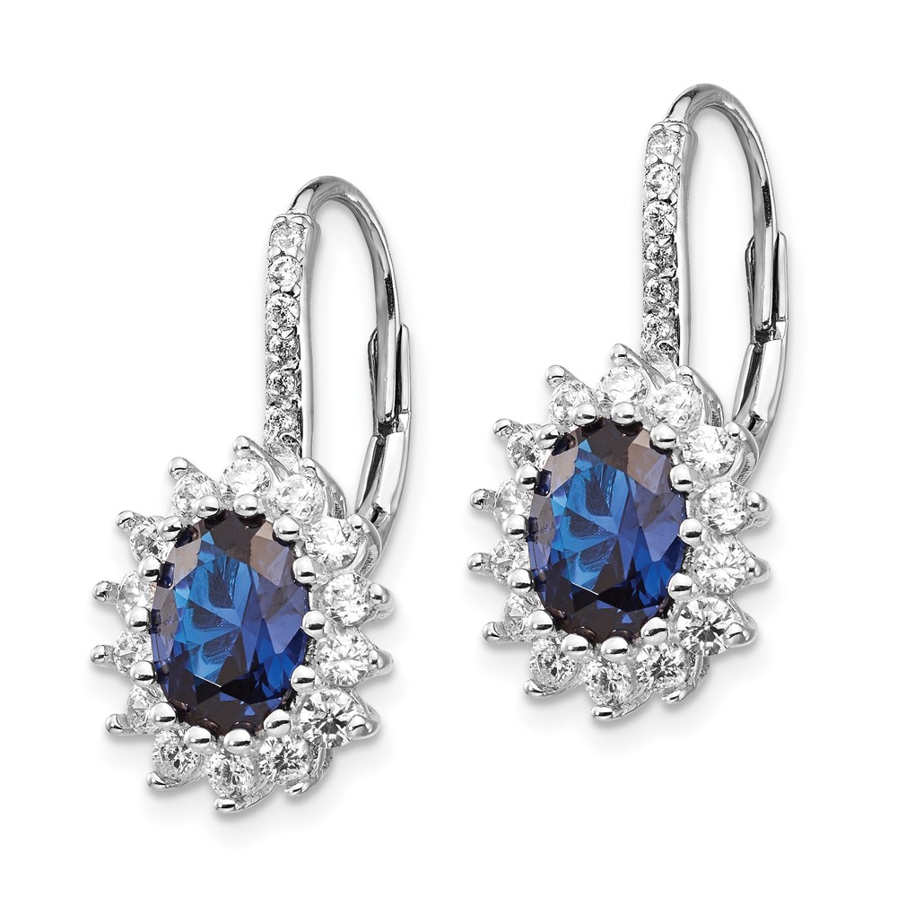 Cheryl M Sterling Silver Rhodium-plated Brilliant-cut Lab Created Dark Blue Spinel and Brilliant-cut White CZ Oval Halo Leverback Earrings