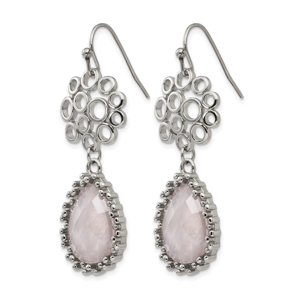 Stainless Steel Polished Rose Quartz Dangle Shepherd Hook Earrings