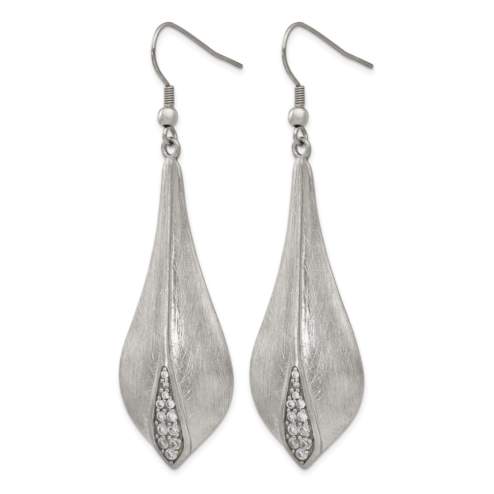Stainless Steel Brushed and Polished CZ Dangle Shepherd Hook Earrings