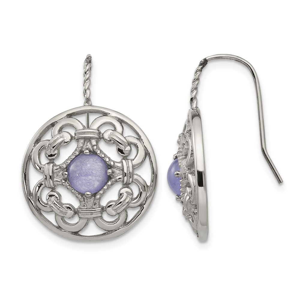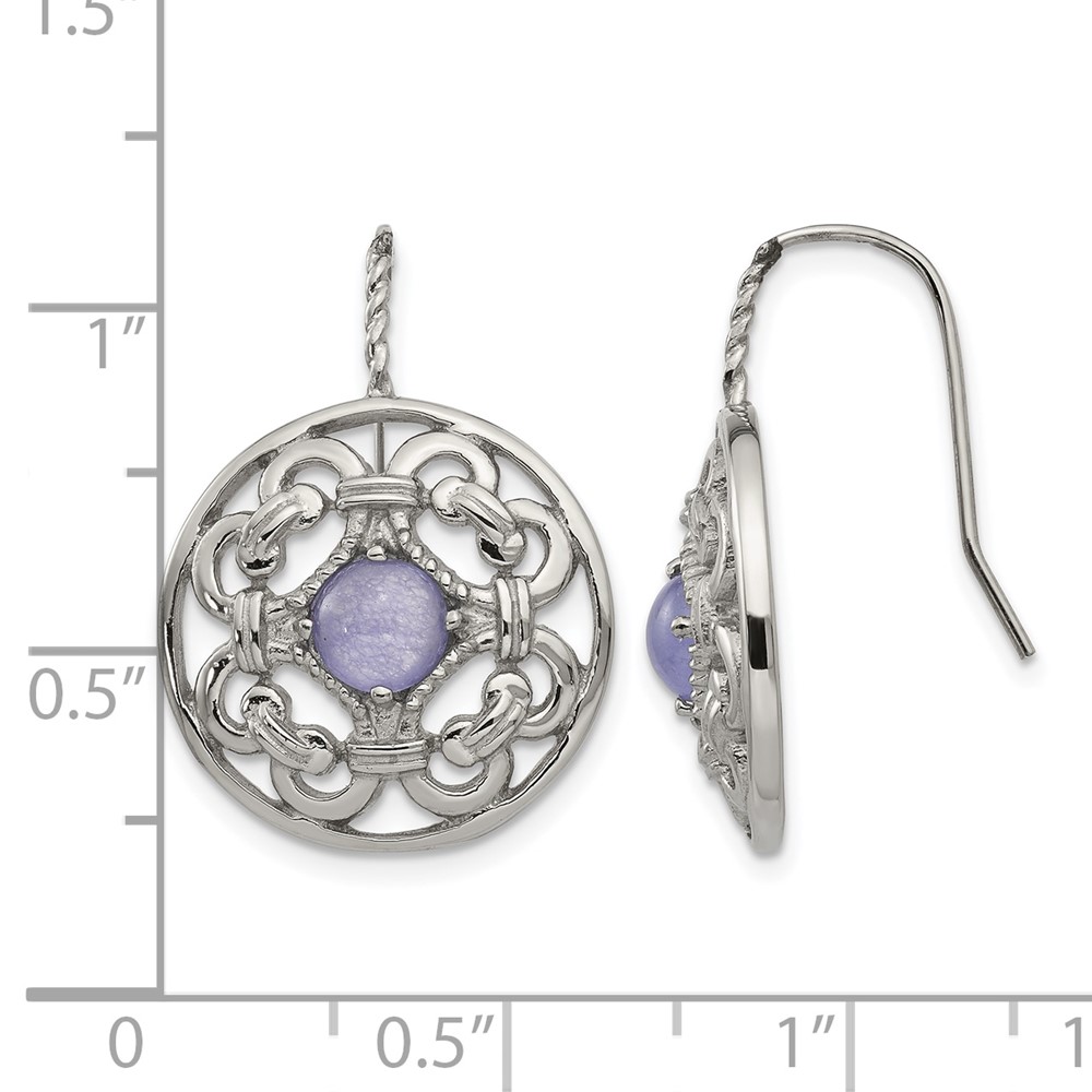 Chisel Stainless Steel Polished Synthetic Purple Calcedony Shepherd Hook Earrings