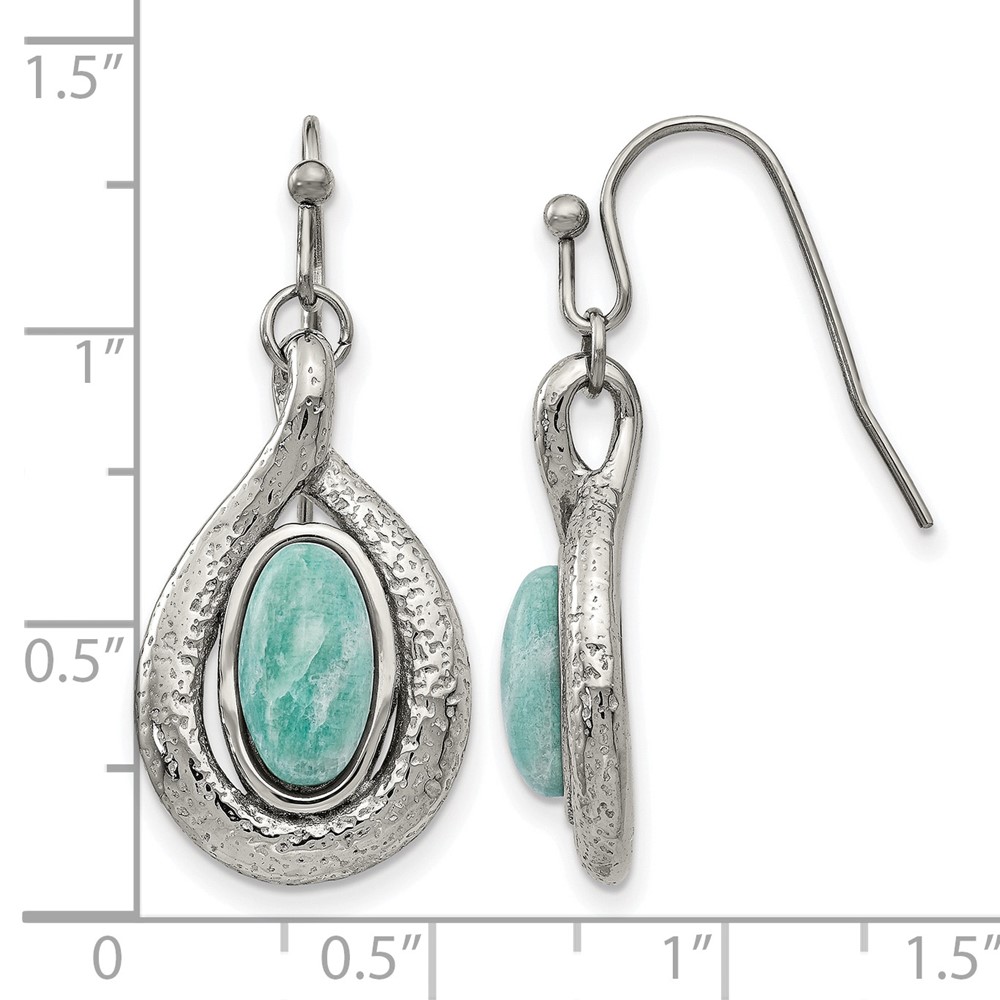 Stainless Steel Polished and Textured Dyed Synthetic Green Jade Earrings