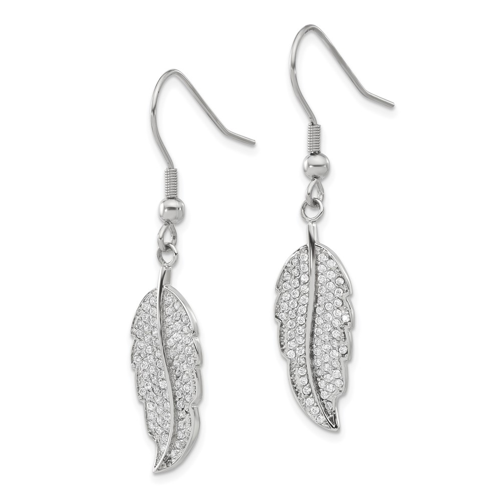 Stainless Steel Polished CZ Leaf Shepherd Hook Dangle Earrings