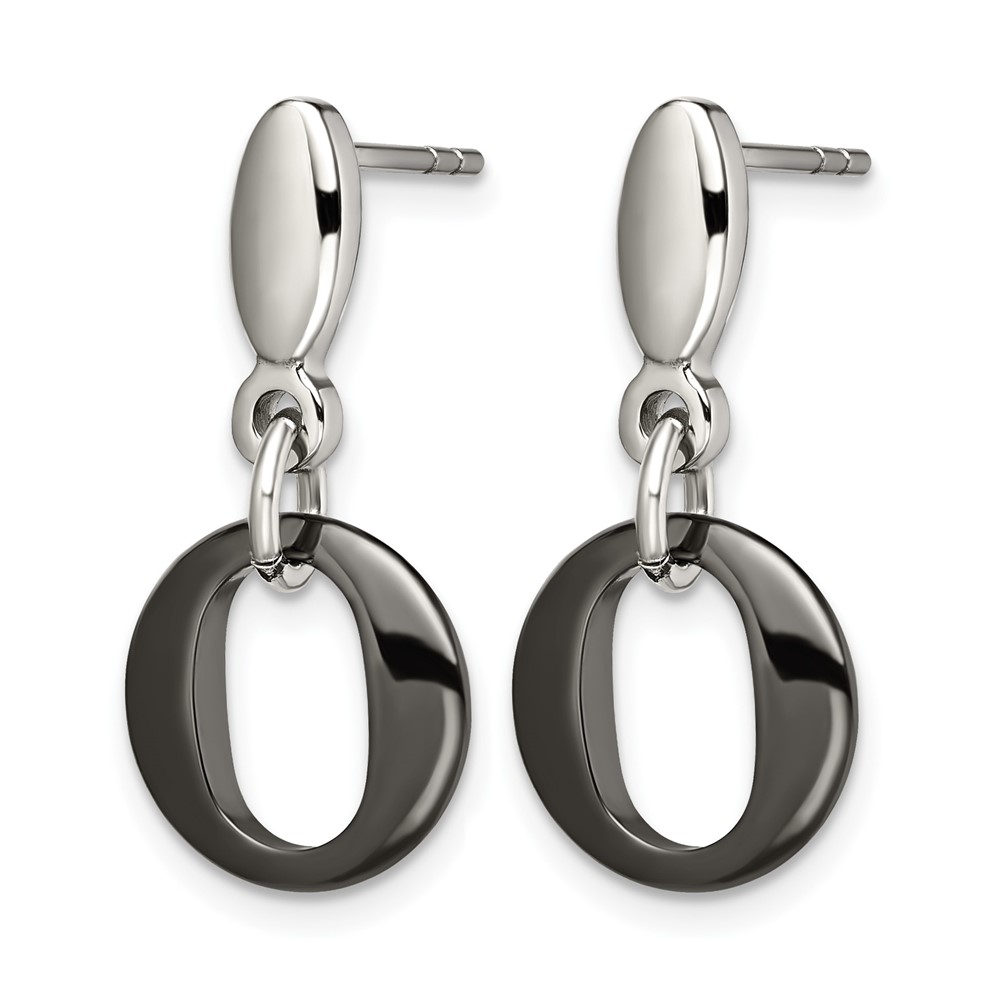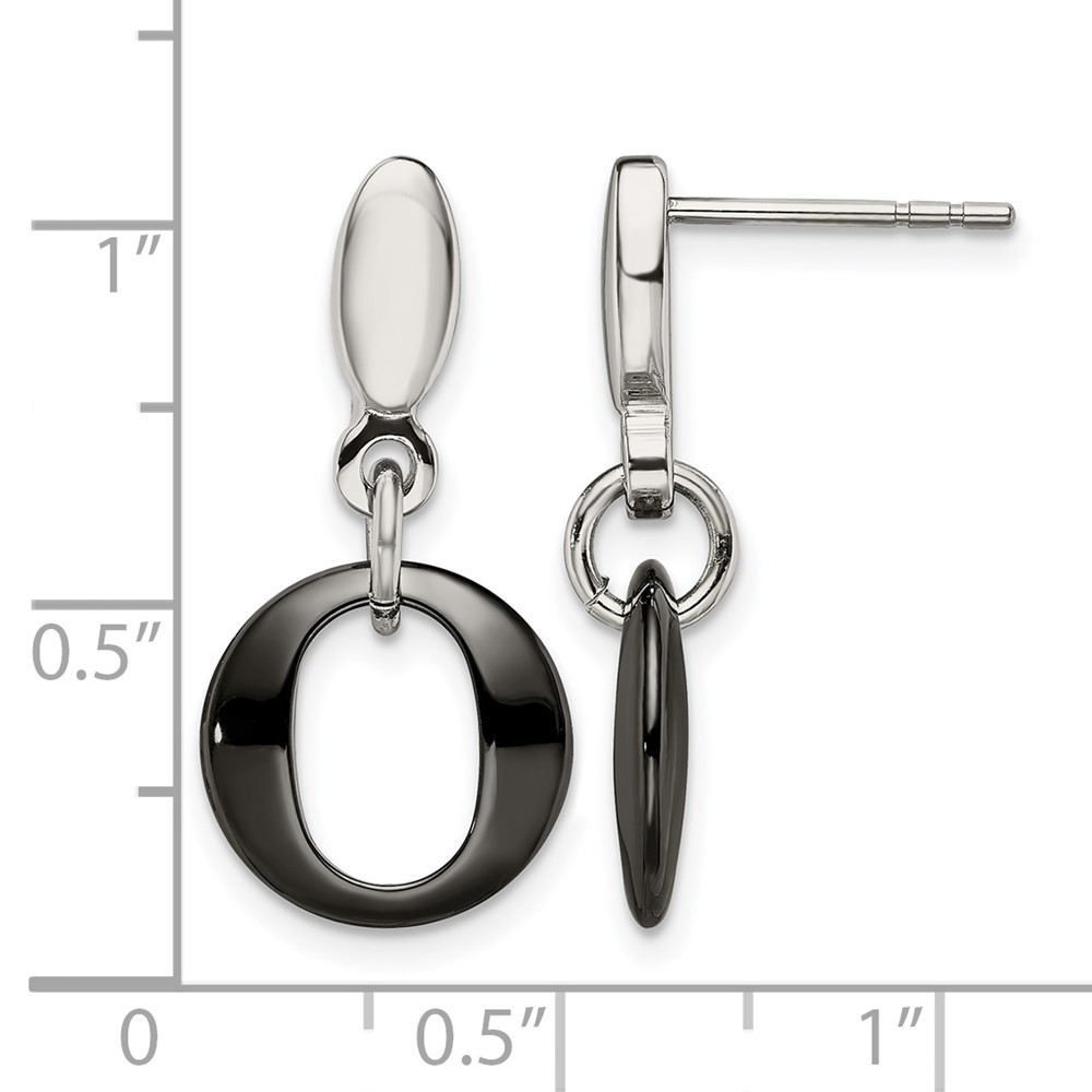 Chisel Stainless Steel Polished with Black Ceramic Post Dangle Earrings
