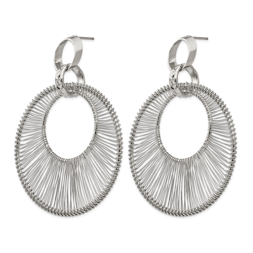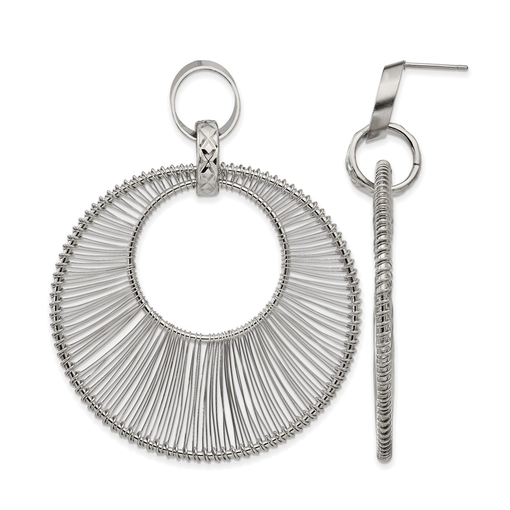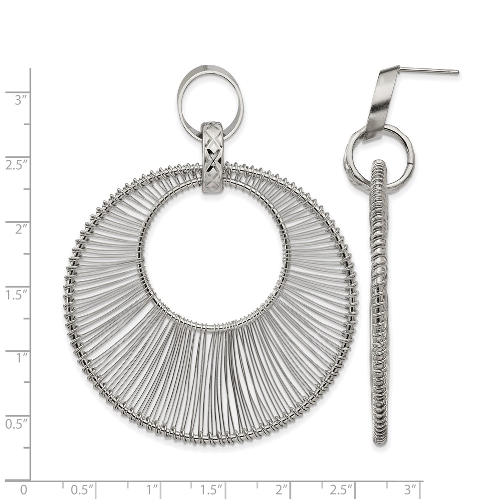 Stainless Steel Polished Textured Wire Circular Post Dangle Earrings
