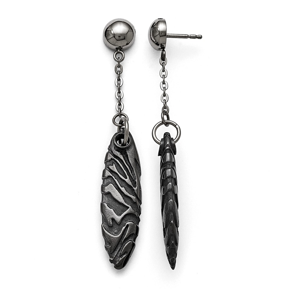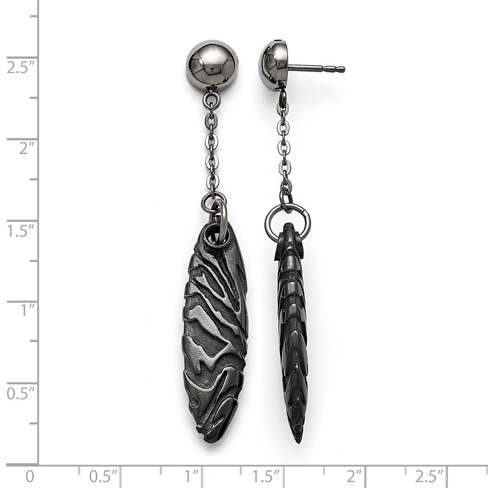 Titanium/Ster.Sil Black Ti Polished Etched Post Dangle Earrings