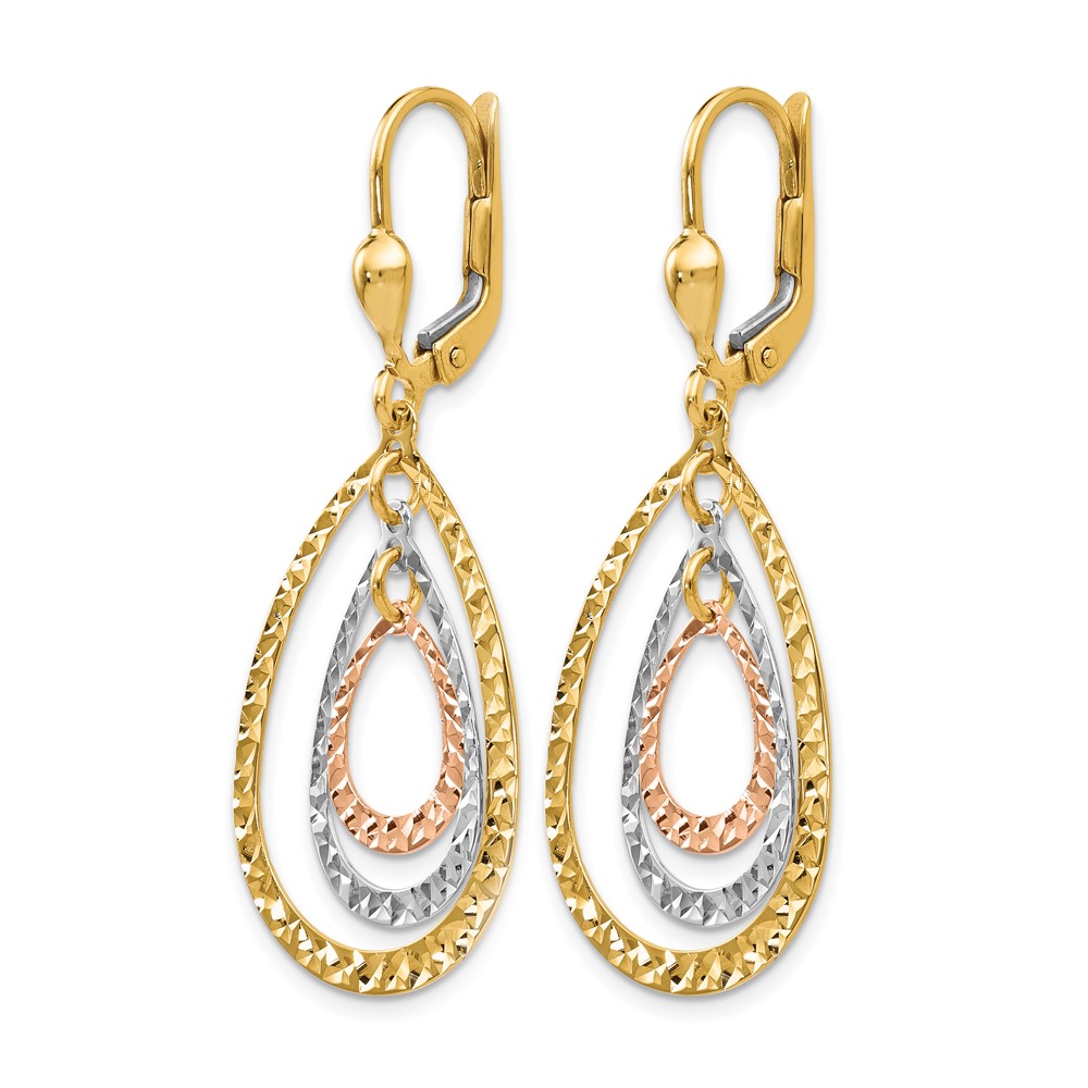 Leslie's 14K Tri-color Polished and D/C Leverback Earrings