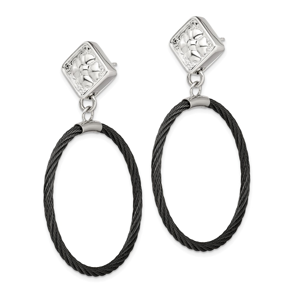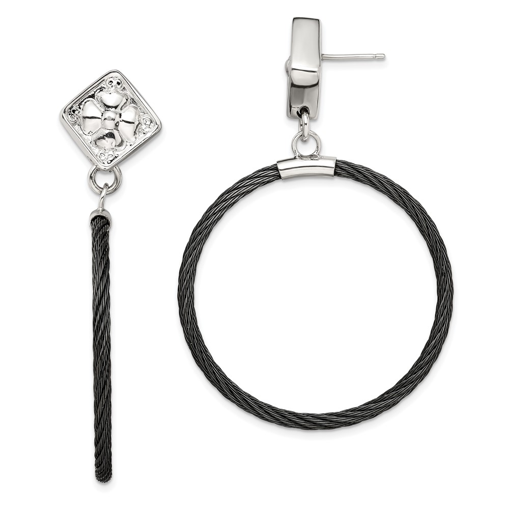Edward Mirell Black Ti Cable and Sterling Silver Floral Post Dangle Earrings