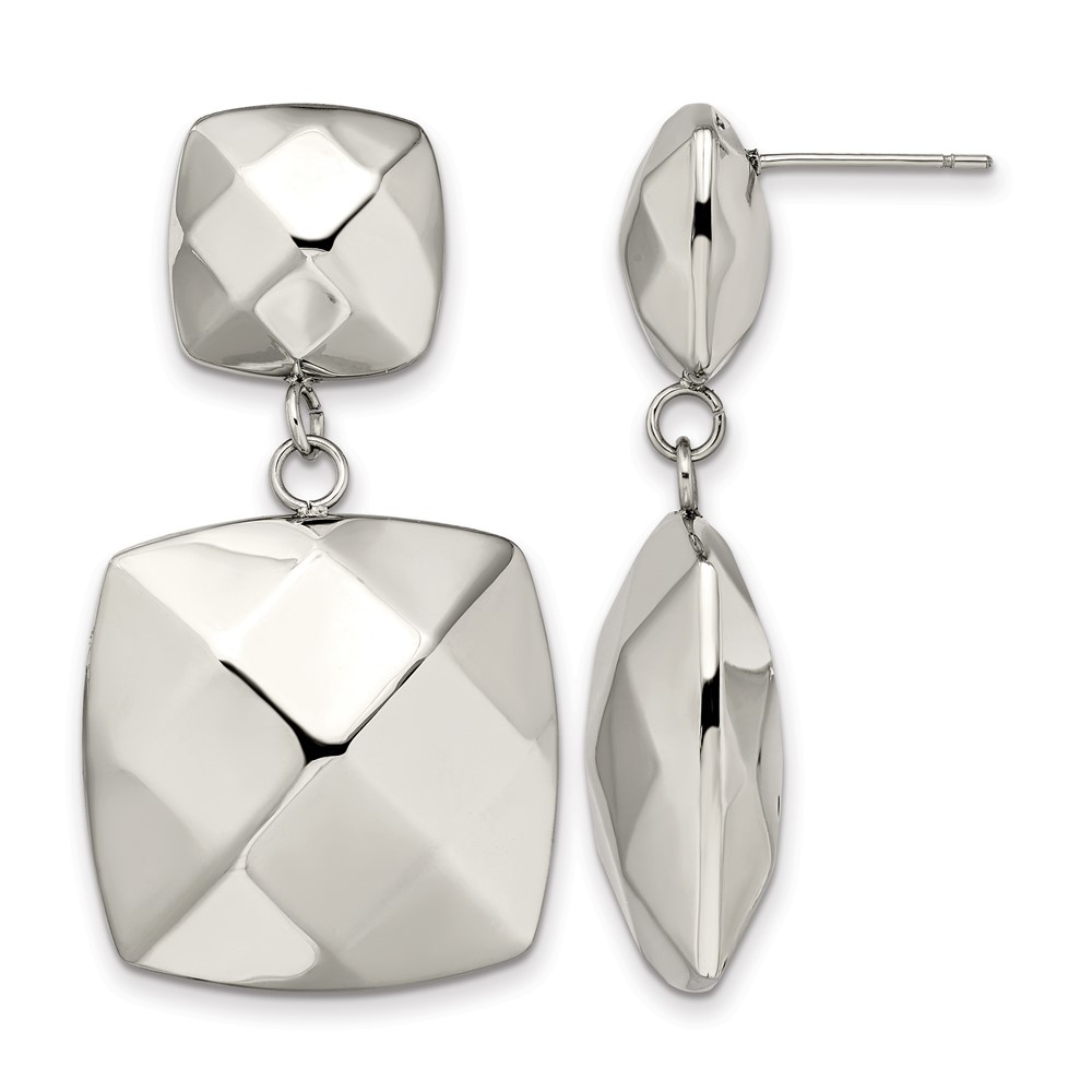 Stainless Steel Polished Hollow Squares Post Dangle Earrings