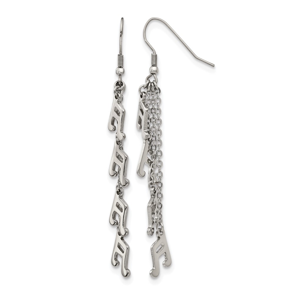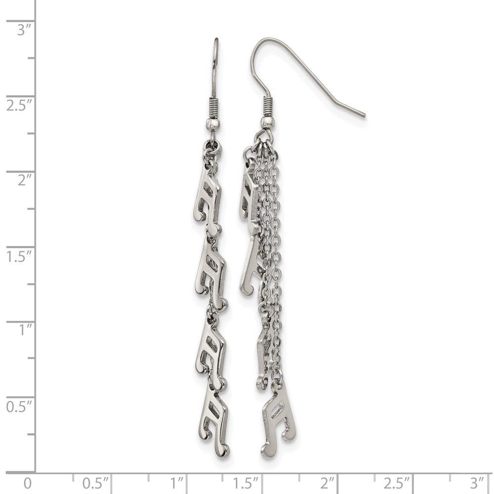 Chisel Stainless Steel Polished Music Note Multi Chain Dangle Shepherds Hook Earrings