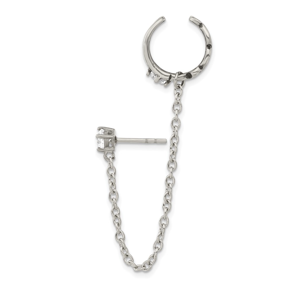 Stainless Steel Antiqued and Polished CZ Cuff Earring (Sold Single)