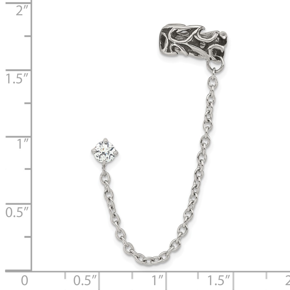 Stainless Steel Antiqued and Polished CZ Cuff Earring (Sold Single)