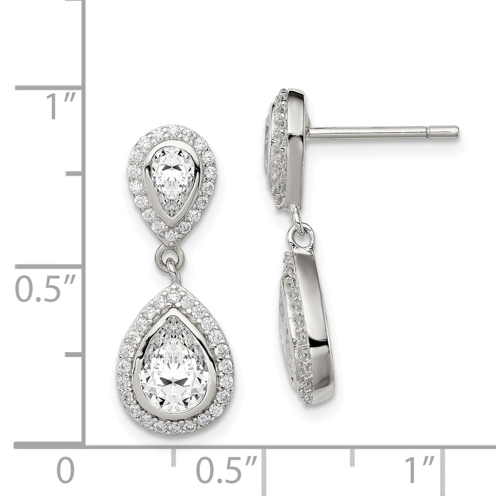 Sterling Silver Rhodium-plated Polished CZ Pear Halo Post Dangle Earrings
