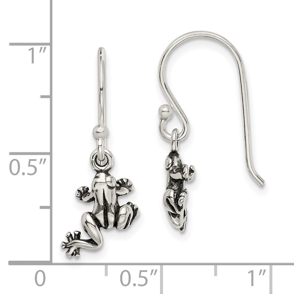 Sterling Silver and Antiqued Frog Shepherd Hook Earrings