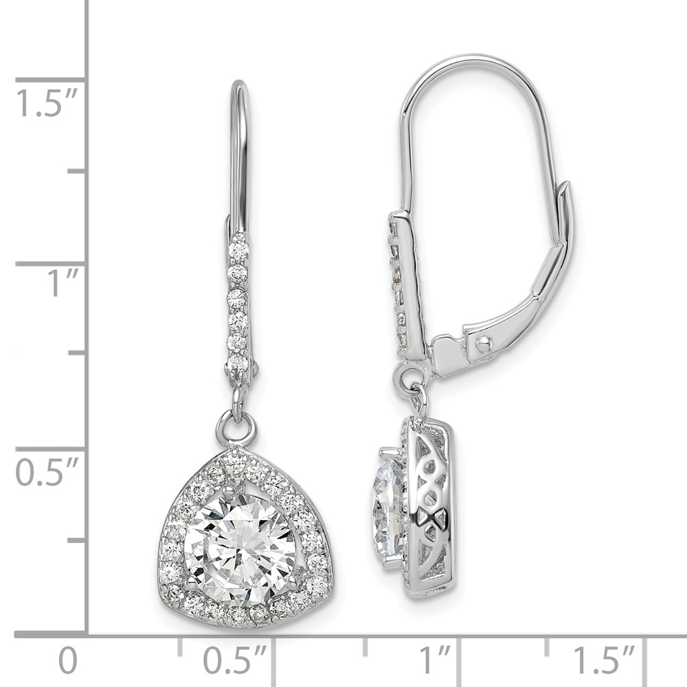 Sterling Silver Rhodium-plated Polished CZ Leverback Earrings