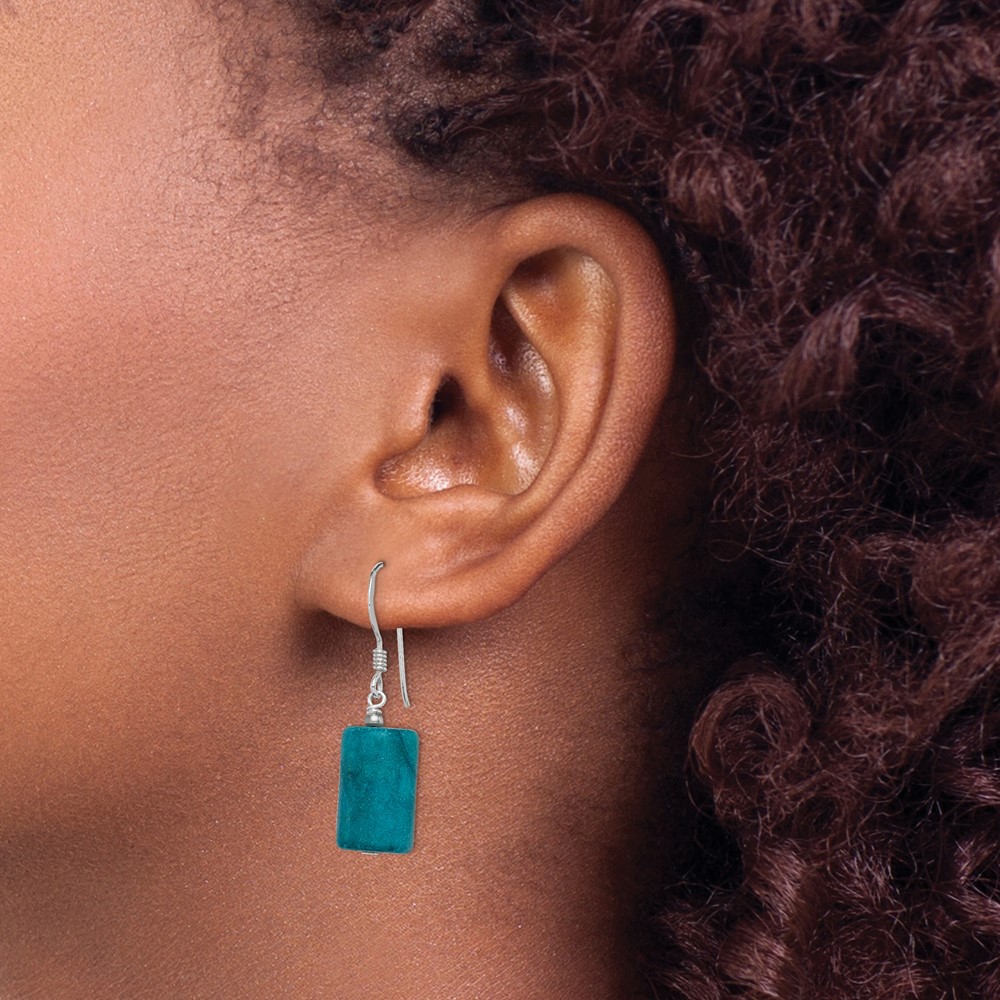 Sterling Silver Polished Blue Jasper Rectangle Dangle Earrings